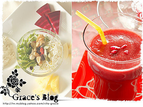 - 將新鮮芽苗洗淨,甜菜根洗淨、切塊,鳳梨、蘋果洗淨、去皮、切塊。